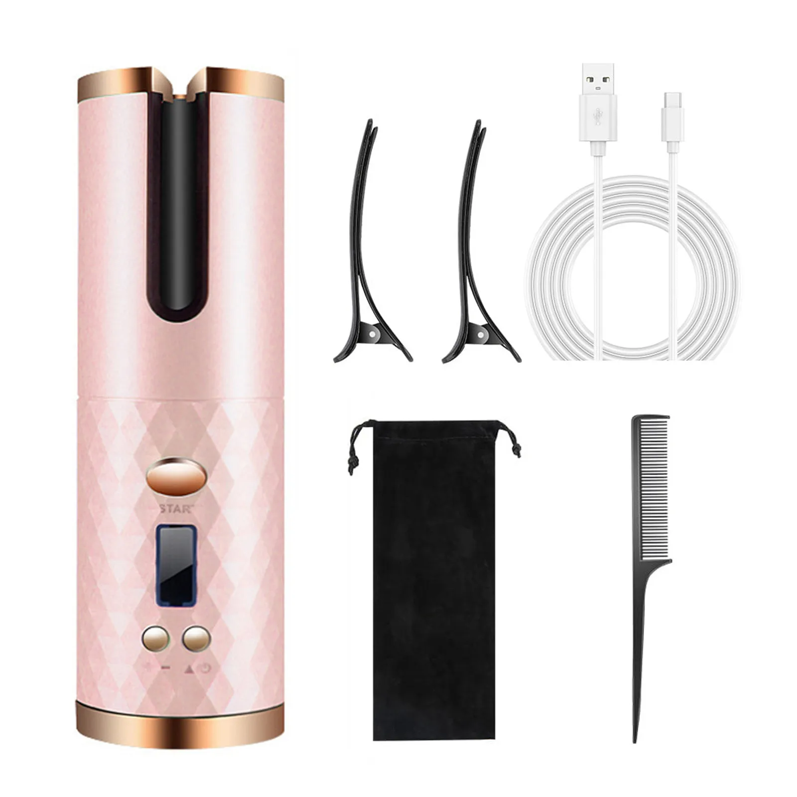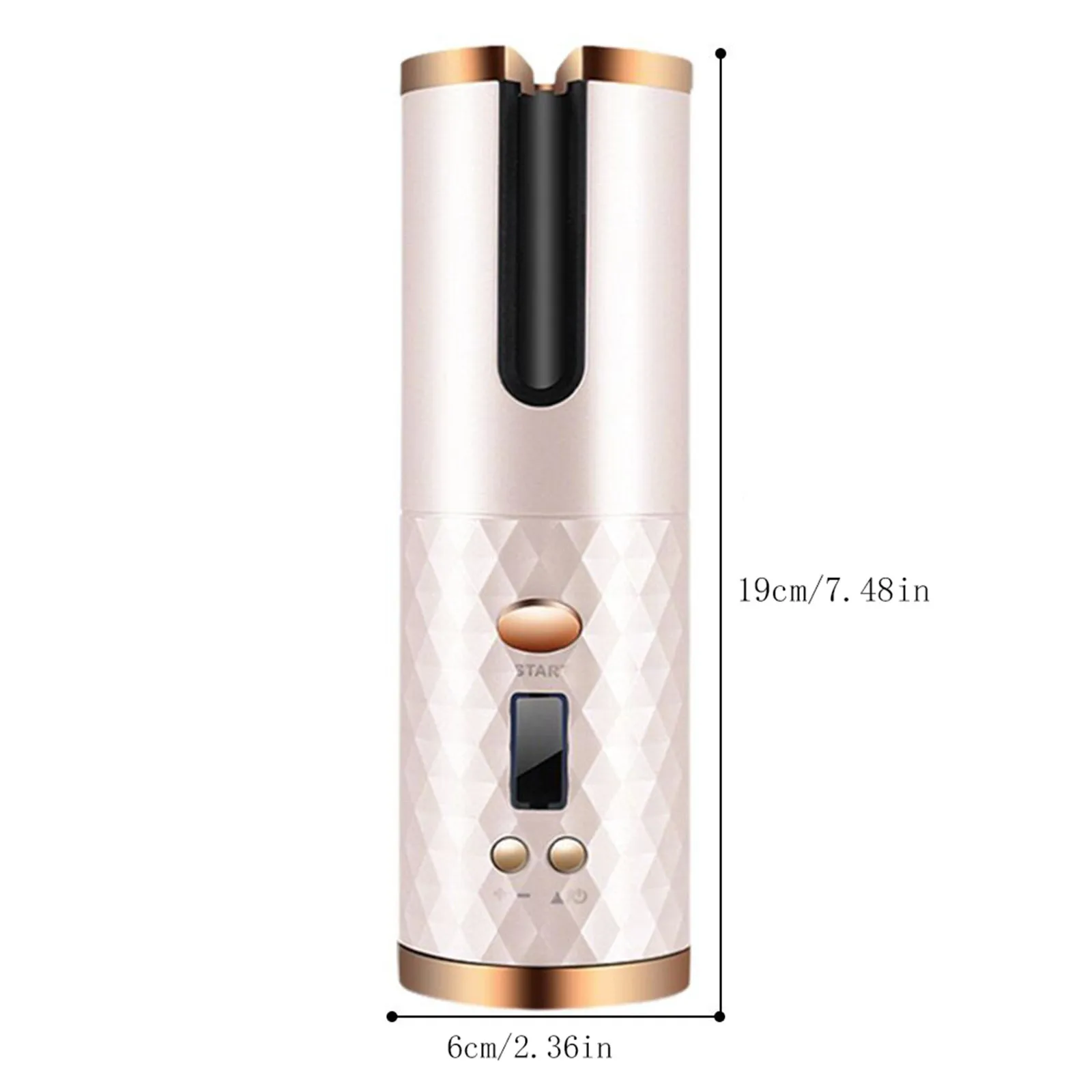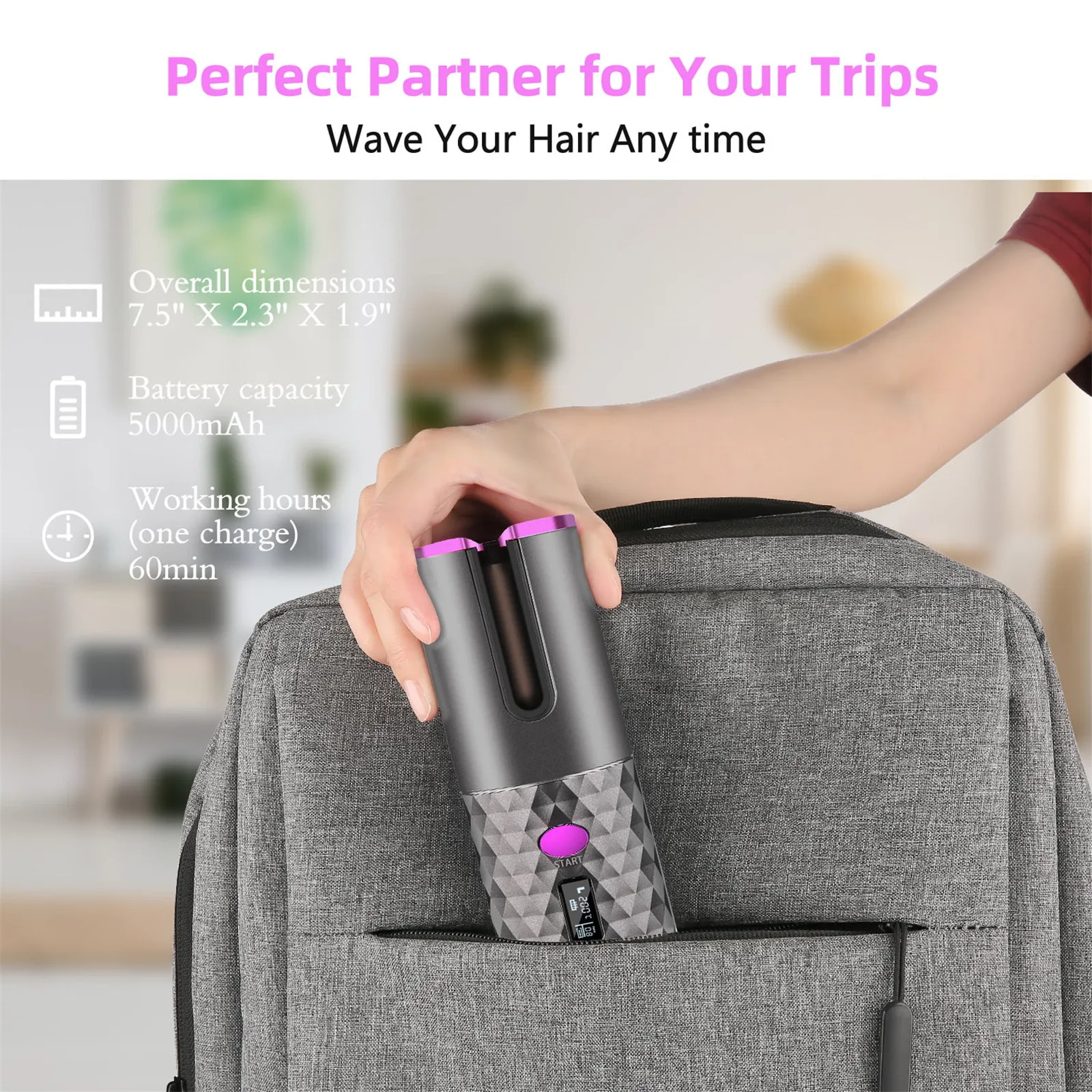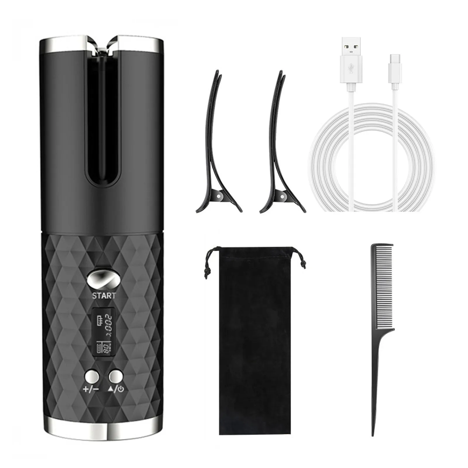 Modelador de Cabelo Automático Sem Fio, com Visor LCD e Temperatura Ajustável, Portátil e Recarregável via USB.